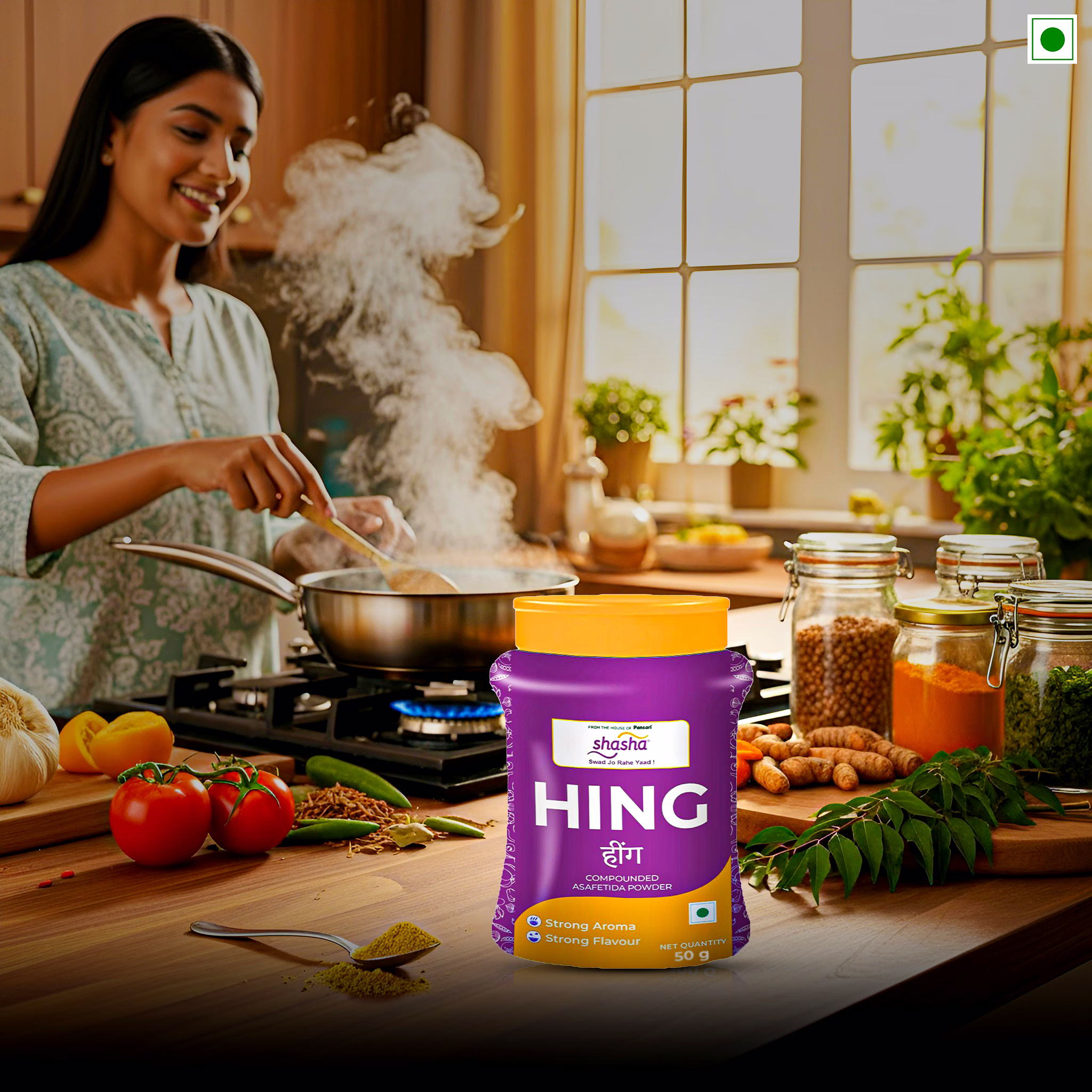 Shasha Hing Powder โ 50g is a high-quality asafoetida powder widely used in Indian cooking to enhance flavor and aroma. A small quantity of hing is added during tadka (tempering) to bring a rich aroma and distinctive taste to dishes.
