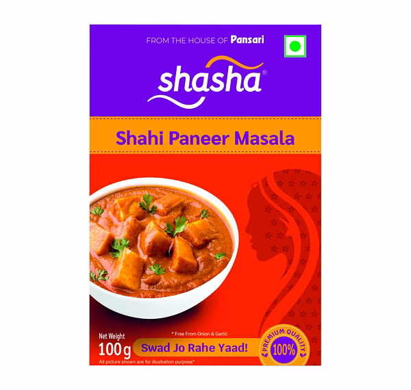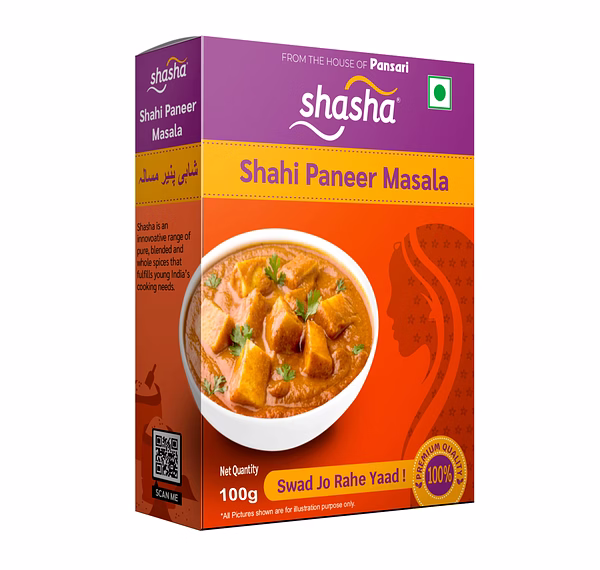Shasha Shahi Paneer Masala – 100g is a specially crafted spice blend designed to prepare rich and creamy shahi paneer curry. It contains selected spices that provide a balanced aroma, mild spice, and authentic Mughlai-style flavor.
