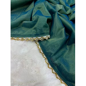 Introducing our exquisite Shimmer Silk Saree, a true embodiment of elegance and grace. Crafted with utmost precision and attention to detail, this saree is a perfect blend of tradition and contemporary design. Made with high-quality shimmer silk fabric, this saree not only looks luxurious but also feels incredibly comfortable on the skin. The shimmer effect adds a touch of glamour, making it an ideal choice for any special occasion or celebration. What sets this saree apart is the stunning rubber print and Mukesh work that adorns its entirety. The intricate patterns and motifs created by the rubber printing technique lend a unique and captivating charm to the saree. Coupled with the delicate Mukesh work, this saree becomes a true work of art that is sure to turn heads wherever you go. To further enhance its appeal, this saree features a beautiful lace border that adds a touch of femininity and sophistication. The intricate lacework perfectly complements the overall design, making this saree a truly standout piece in any wardrobe. With its versatile design and exceptional craftsmanship, this Shimmer Silk Saree is sure to make you feel like a queen. Whether you're attending a wedding, a festive celebration, or a social gathering, this saree will effortlessly make you the center of attention. Indulge in the richness of our Shimmer Silk Saree and experience the allure of its rubber print, Mukesh work, and lace border. Make a statement and exude elegance with every step you take. Embrace the beauty of tradition while embracing your unique style. Order now and let this saree be a reflection of your exquisite taste and timeless sophistication.