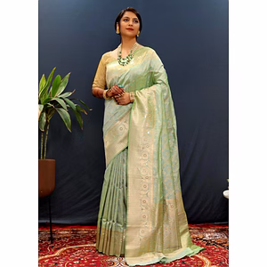 Introducing the magic shimmer georgette silk saree, a breathtaking piece that will leave you feeling like royalty. The saree is expertly crafted with intricate designer weaving and fur work that shines in the light, making you the center of attention at any event. The saree is also adorned with a unique designer Siroski cutwork lace, adding a touch of sophistication and elegance. But the beauty doesn't stop there. The saree comes with a tone-to-tone Bangalore silk blouse, perfectly matching the color and design of the saree. The blouse is also attached with a designer lace, completing the look with a touch of glamour. Not only is this saree stunning in appearance, but it is also made with high-quality georgette silk, ensuring that it is comfortable and durable. The saree is easy to drape and maintain, making it a perfect addition to any wardrobe. Whether you're attending a wedding, formal event, or simply want to make a statement, the magic shimmer georgette silk saree is the perfect choice. It is a unique and luxurious piece that will elevate any outfit and leave you feeling confident and beautiful. Don't miss out on this one-of-a-kind saree and add it to your collection today.