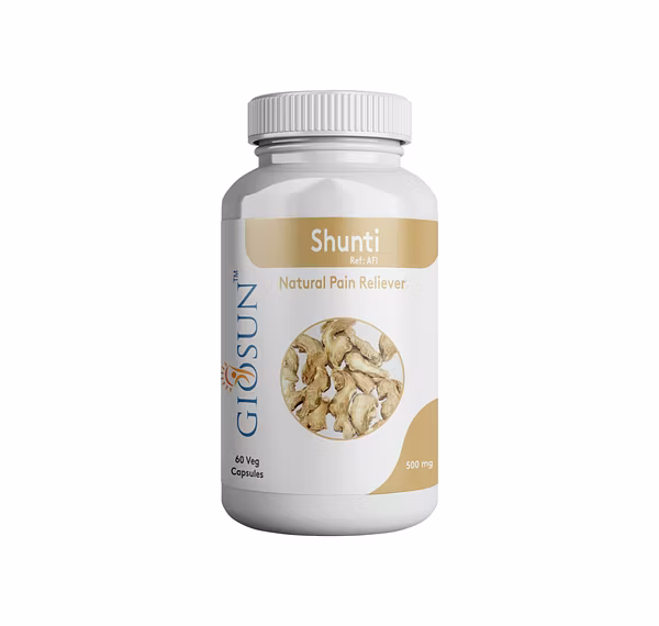 Shunti - 500mg Capsule by Giosun is an ayurvedic product developed to meet the needs of individuals seeking natural body care. It is crafted with select herbs known for their therapeutic effects.