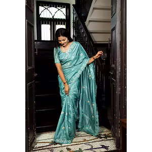 Introducing our exquisite Pure Soft Silk Saree, a masterpiece that seamlessly blends elegance and craftsmanship. Crafted with precision, this saree showcases an impeccable heavy multistitched embroidery work with a mesmerizing cutwork design that adds a touch of sophistication to your ensemble. The luxurious fabric of this saree is pure soft silk, offering a sensual drape that gracefully hugs your curves. It provides utmost comfort, allowing you to effortlessly glide through any occasion with confidence and grace. The intricate embroidery work on this saree is a true testament to the skilled artisans who have poured their heart and soul into creating this masterpiece. The delicate details and vibrant colors make this saree a true work of art, capturing the attention of all those around you. The running blouse with matching embroidery work complements the saree perfectly, adding a touch of elegance to your overall look. It is designed to enhance your natural beauty and provide a seamless fit, ensuring you feel comfortable throughout the day or night. This Pure Soft Silk Saree is not just a piece of clothing, but a statement of your individuality. It is a testament to your impeccable taste in fashion, allowing you to stand out from the crowd and make a lasting impression. Whether you're attending a wedding, a festive celebration, or a special event, this saree is the perfect choice to make a bold and captivating statement. It effortlessly combines traditional charm with contemporary appeal, making it suitable for women of all ages and style preferences. Embrace the allure of timeless beauty and indulge in the luxury of our Pure Soft Silk Saree. Elevate your wardrobe with this exquisite piece and let your style shine through. Experience the joy of wearing a saree that exudes elegance, sophistication, and unparalleled craftsmanship.
