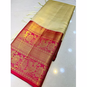 Embellish your wardrobe with gorgeous traditional sarees for every occasion. These silky soft Kanjivaram Pattu sarees are the epitome of elegance and style. Each saree is meticulously crafted with soft silk weaving, ensuring a luxurious feel and a stunning drape. The intricate zari weaving adds a touch of opulence to these sarees, making them perfect for special events and celebrations. With a rich pallu and a handcrafted blouse, these sarees exude timeless beauty and grace. The Kanjivaram Pattu fabric used in these sarees is known for its rich texture and vibrant colors, making them stand out in any crowd. They are designed to make you feel like a queen, with their exquisite craftsmanship and attention to detail. Whether you're attending a wedding, a festive gathering, or simply want to make a statement, these sarees are the perfect choice. They are a reflection of Indian tradition and heritage, and wearing one is like wearing a piece of art. Indulge in the luxury of these Kanjivaram Pattu sarees and let your inner beauty shine through. With their timeless appeal and impeccable quality, they are sure to become a treasured addition to your wardrobe. Invest in these stunning sarees and make heads turn wherever you go. Embrace the elegance and grandeur of traditional Indian fashion with these exquisitely crafted pieces. Upgrade your style quotient and make a statement with these Kanjivaram Pattu sarees.