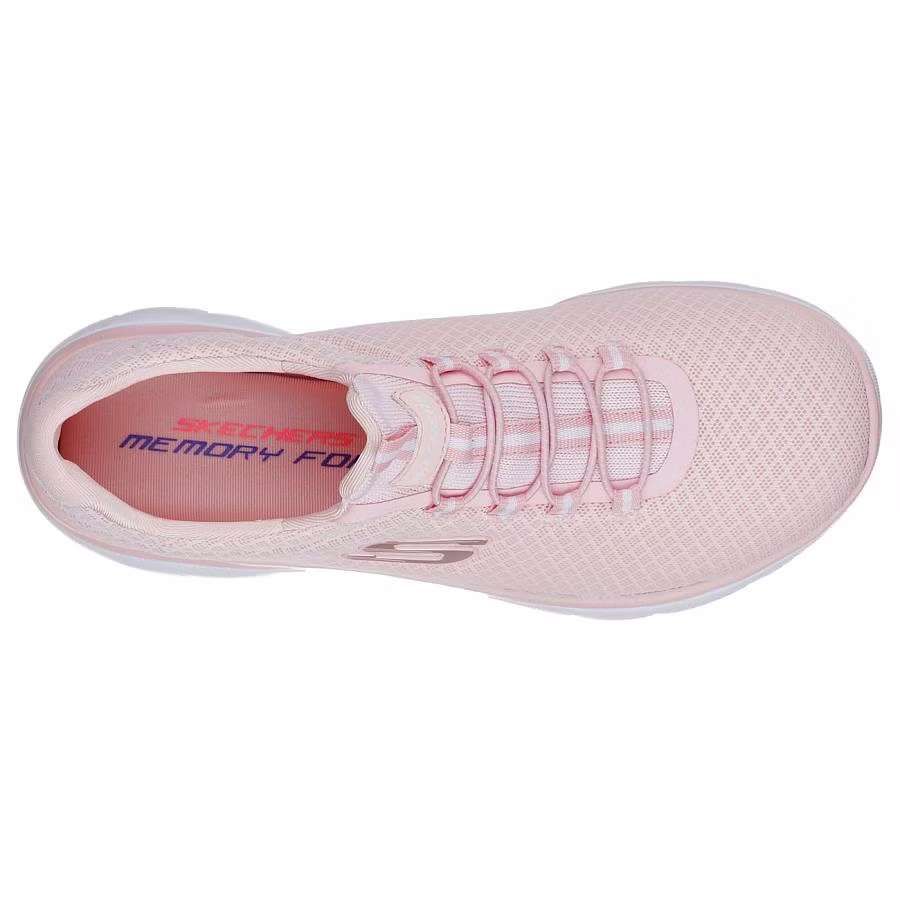 Reach the heights of sporty style and comfort with the SKECHERS Summits shoe. Nearly one piece soft smooth flat knit mesh fabric upper in a bungee laced slip on athletic training sneaker with stitching accents. Memory Foam insole. Experience the quality and performance that sets our products apart. Elevate your game with our high-quality products designed for athletes and enthusiasts. Discover the difference that premium materials and expert craftsmanship can make in your athletic pursuits.