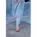 Treat yourself to the epitome of craftsmanship and style with our Sky Blue Premium Quality Unstitched Suit. The delicate heavy cutwork adds a touch of luxury, ideal for making a fashionable statement.