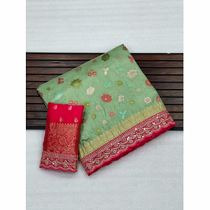 Introducing the Soft Dolla Silk Wedding Saree with Multi Embroidery Work, a mesmerizing blend of elegance and craftsmanship. Immerse yourself in the luxury of this exquisite saree, designed to make you feel like a true queen on your special day. Crafted from the finest quality Dolla silk, this saree drapes effortlessly, accentuating your curves and exuding grace. The intricate multi embroidery work adds a touch of opulence, making you the center of attention wherever you go. Experience the unparalleled comfort of the soft fabric against your skin, allowing you to move with ease and confidence throughout the day. The vibrant colors and delicate patterns make this saree a visual delight, ensuring you make a lasting impression. Whether it's a wedding, festive occasion, or a formal event, the Soft Dolla Silk Wedding Saree with Multi Embroidery Work is the perfect choice for the modern woman who appreciates timeless beauty. Embrace the magic of this exquisite saree and let your radiance shine through.