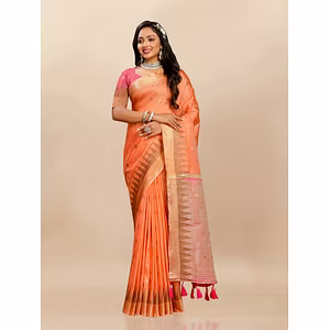 The Soft Katan Silk Saree with Copper Zari Weaving Design and Rich Zari Pallu is a timeless piece that epitomizes elegance and sophistication in the world of traditional Indian attire. Woven from the finest Katan silk, this saree exudes a delicate sheen and a luxuriously smooth texture, making it a perfect choice for special occasions and festive celebrations. The saree's main fabric is a gorgeous soft Katan silk, renowned for its durability and fine weave. This silk is known for its lightweight yet substantial feel, draping elegantly against the body, enhancing the wearer’s silhouette with its natural fall and flow. The sheen of the Katan silk fabric brings out the intricate designs woven into it, making each saree a unique masterpiece. One of the standout features of this exquisite saree is the copper zari weaving design that adorns its length. Zari, a traditional form of embroidery using metallic threads, is intricately woven into the silk, creating elaborate patterns that shimmer with a coppery glow. These patterns may range from traditional motifs like paisleys and florals to more contemporary designs, each executed with meticulous attention to detail. The copper zari contrasts beautifully with the rich colors of the silk, adding a touch of opulence and grandeur. Adding to the saree’s allure is its rich zari pallu. The pallu, or the loose end of the saree that is draped over the shoulder, features an elaborate display of zari work. The intricate designs on the pallu showcase the craftsmanship and artistry of the weavers, creating a stunning visual impact. The rich zari work on the pallu not only adds to the aesthetic appeal but also serves as a statement piece that highlights the luxurious nature of the saree. This Soft Katan Silk Saree with Copper Zari Weaving Design and Rich Zari Pallu is not just a piece of clothing but a work of art. It reflects the rich cultural heritage of India and the skilled craftsmanship that has been passed down through generations. Whether worn for weddings, festive occasions, or cultural events, this saree promises to make the wearer stand out with its exquisite design and unparalleled elegance.