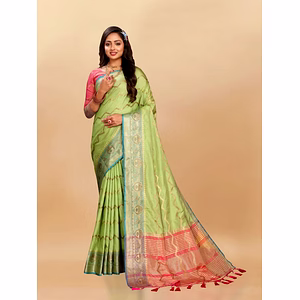 Experience the epitome of elegance with our Soft Katan Silk Saree. Meticulously crafted to exude sophistication and grace, this saree is a masterpiece of timeless beauty and exquisite craftsmanship. The rich Zari weaving design adds a touch of regal opulence, while the intricate patterns on the border enhance its traditional charm. The delicate tassels at the pallu end add a playful twist, making this saree a perfect choice for weddings, festive occasions, or any special event. The luxurious silk blouse complements the saree, completing the ensemble in a truly captivating way. With its impeccable quality and attention to detail, this saree promises to make you the center of attention wherever you go. Embrace the allure of our Soft Katan Silk Saree and step into a world of elegance and charm.