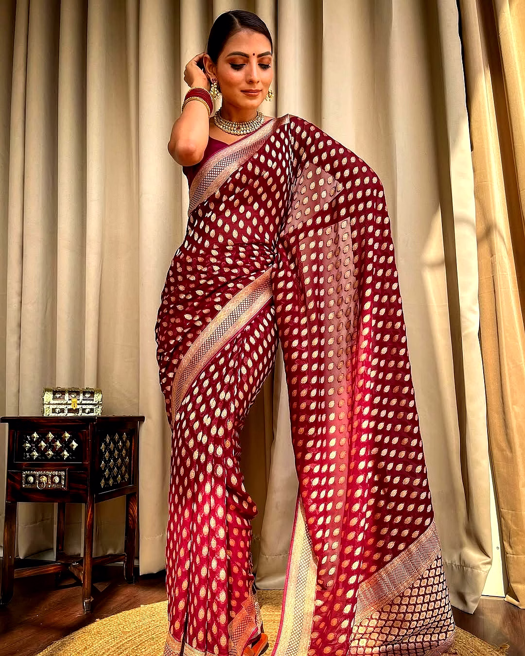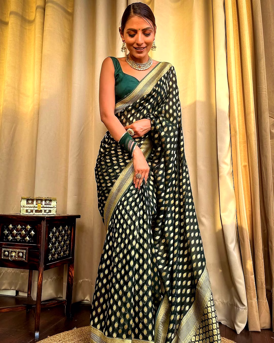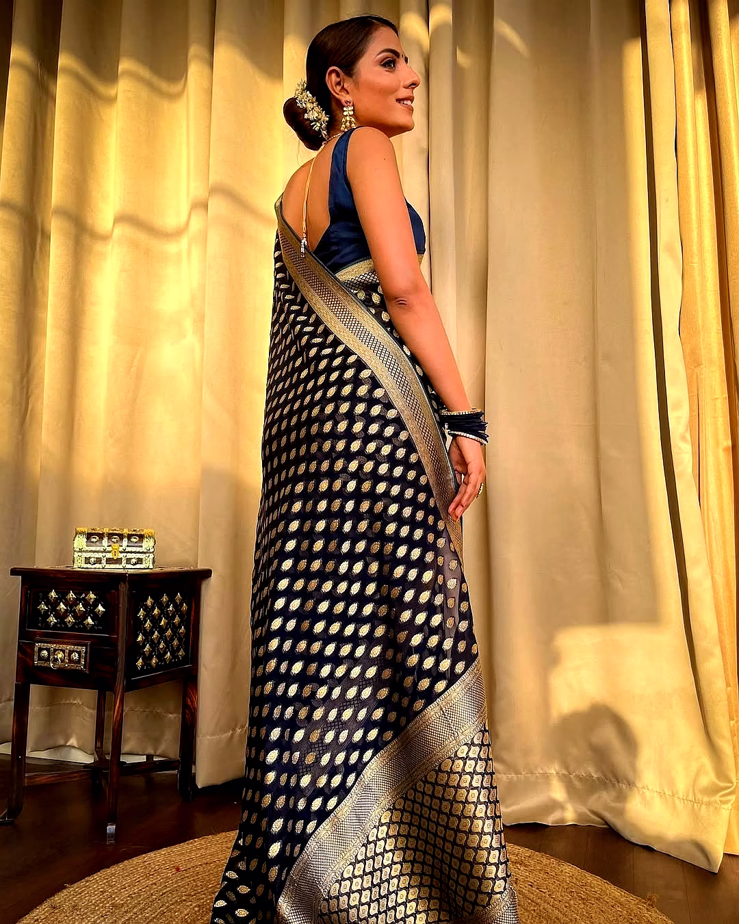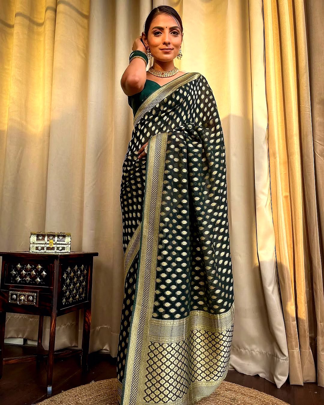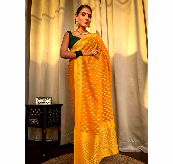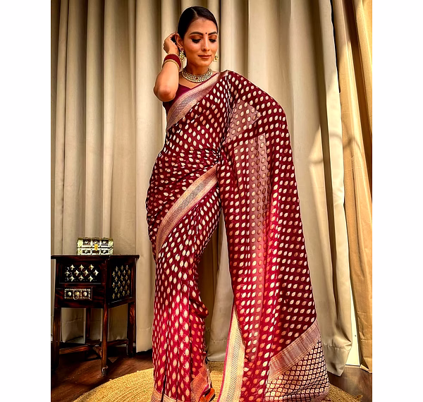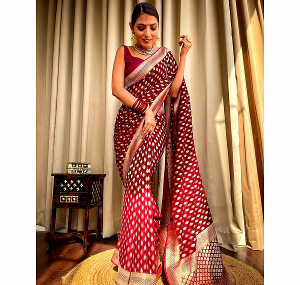 This saree drapes beautifully, enhances your silhouette, and adds a refined charm suitable for all age groups. Whether worn to a family function, festive gathering, office event, or casual outing, it delivers effortless sophistication.