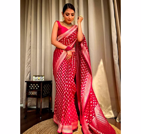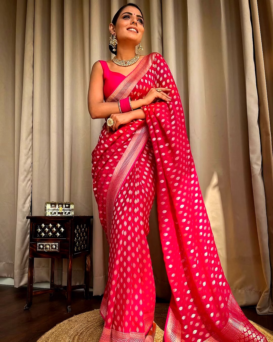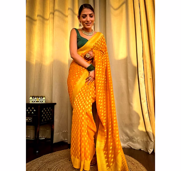 Redefine everyday elegance with this Soft Lichi Silk Saree, crafted for women who love the richness of silk with the comfort of lightweight fabric. Known for its smooth texture and graceful fall, lichi silk offers a luxurious look without feeling heavy, making it perfect for both festive celebrations and regular wear.