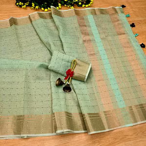 Introducing our Premium Soft Muga Cotton Saree, a true masterpiece that effortlessly blends tradition with contemporary elegance. Crafted with intricate details and exquisite craftsmanship, this saree is sure to capture your heart. One of the standout features of this saree is the classic Jamdani type contrast weaving border, which adds a touch of grace and sophistication. The all-over Resham weaving buttas further enhance the overall beauty of the saree, creating a mesmerizing effect that will leave everyone in awe. The traditional pallu, adorned with fancy tassels, is a testament to the rich cultural heritage of India. It exudes a sense of grandeur and offers a unique twist to the overall design. Every time you drape this saree, you'll feel like a true queen, radiating confidence and timeless beauty. Made from premium soft Muga cotton, this saree ensures utmost comfort and a luxurious feel against your skin. The fabric is known for its superior quality and durability, making it the perfect choice for both special occasions and everyday wear. To complete the ensemble, we have included a contrasting blouse piece that perfectly complements the saree. This allows you to effortlessly create a stunning look that is tailored to your personal style. In summary, our Premium Soft Muga Cotton Saree with its classic Jamdani type contrast weaving border, all-over Resham weaving buttas, traditional pallu with fancy tassels, and included contrast blouse piece, is a true masterpiece that will make you stand out from the crowd. Experience the essence of Indian heritage and elegance with this saree and embrace the compliments that come your way.
