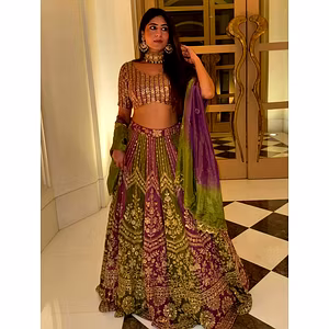 This soft organza lehenga is the ultimate blend of traditional and modern styles. With its intricate designer sequence embroidery, this lehenga is perfect for any special occasion, from weddings to formal events. The lightweight and breathable fabric of the lehenga ensures that you'll be comfortable all day and night. The lehenga features a flattering A-line silhouette that flares out from the waist, giving you an elegant and feminine look. The wide waistband sits comfortably on your hips, cinching in your waist and accentuating your curves. The soft organza fabric moves gracefully with you, giving you a fluid and ethereal look. The designer sequence embroidery is the highlight of this lehenga, with intricate and delicate designs that catch the light and sparkle beautifully. The embroidery is done by skilled artisans, ensuring that each piece is unique and of the highest quality. This lehenga is a must-have for any fashion-forward woman looking to make a statement at her next special event. Its unique blend of traditional and modern styles, combined with its lightweight and breathable fabric and intricate designer sequence embroidery, make it a truly unique and eye-catching piece. So why wait? Add this stunning lehenga to your wardrobe today and get ready to turn heads wherever you go!