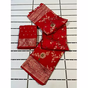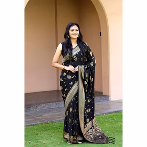 Introducing our stunning Soft Silk Saree: Elegant Khadi Georgette with Rich Zari Weaving. This exquisite piece of craftsmanship is designed to elevate your style and make you stand out from the crowd. Made from premium quality Khadi Georgette fabric, this saree is incredibly soft, lightweight, and comfortable to wear. It drapes beautifully, accentuating your feminine curves and giving you an elegant silhouette. The rich Zari weaving adds a touch of opulence and grandeur to this saree. Intricate and delicate, the Zari work is meticulously done by skilled artisans, ensuring every detail is perfect. The shimmering gold and silver threads create a mesmerizing effect, making you the center of attention at any event or occasion. With its timeless design and classic color options, this Soft Silk Saree is versatile and can be styled in numerous ways. Whether you prefer a traditional look or a modern twist, this saree effortlessly adapts to your personal style. Not only does this saree look stunning, but it is also built to last. The high-quality fabric and craftsmanship ensure durability, so you can enjoy wearing it for years to come. Experience the ultimate blend of elegance, luxury, and comfort with our Soft Silk Saree: Elegant Khadi Georgette with Rich Zari Weaving. Make a statement and leave a lasting impression wherever you go. This saree is a true embodiment of grace, style, and sophistication.