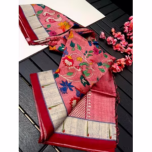 Introducing our Soft Tussar Silk Saree, a perfect blend of elegance and tradition. This saree showcases a mesmerizing Ikkat Patola print, adding a touch of uniqueness to your ensemble. Crafted with utmost care, this saree exudes a regal charm that is sure to captivate hearts. The softness of the Tussar silk fabric ensures a comfortable drape, allowing you to move with grace and poise. The intricate Ikkat Patola print, known for its vibrant colors and geometric patterns, adds a contemporary twist to this traditional attire. It effortlessly blends the best of both worlds, making it a must-have in your ethnic wardrobe. What sets this saree apart is its traditional pattern, which pays homage to our rich cultural heritage. The intricate motifs and designs are a testament to the craftsmanship and skill of our artisans. Each thread is meticulously woven to create a stunning piece of art that you can proudly wear on any occasion. To add a touch of glamour, we have embellished this saree with fancy tassels. These delicate details not only enhance the overall look but also highlight your individual style. They sway gracefully with every step, making heads turn wherever you go. Whether it's a festive celebration, a wedding, or any special occasion, this Soft Tussar Silk Saree is the perfect choice to make a lasting impression. With its elegant Ikkat Patola print, traditional pattern, and fancy tassels, this saree effortlessly combines tradition and style. Invest in this exquisite piece and experience the joy of draping yourself in luxury. Discover the magic of our Soft Tussar Silk Saree and embrace the timeless beauty it brings to your wardrobe. Step into the spotlight and let your grace shine through with this captivating saree.
