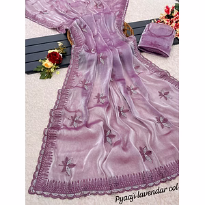 The Soft Zimmy Choo Chiffon Saree is the perfect addition to any wardrobe. Crafted with the finest chiffon, this saree is incredibly soft and comfortable to wear. Its intricate thread and diamond work add a touch of elegance and charm, making it ideal for any formal occasion. One of the key features of this saree is its lightweight nature, which ensures that you can wear it for extended periods without feeling weighed down. Additionally, its softness means that it drapes beautifully, accentuating your figure and giving you a stunning silhouette. The thread and diamond work on the saree are nothing short of spectacular. The intricate designs are eye-catching and create a sense of sophistication and luxury. Whether you're attending a wedding, formal dinner, or any other special event, this saree is sure to turn heads and make you feel like royalty. The Soft Zimmy Choo Chiffon Saree is also incredibly versatile. It can be paired with a range of accessories, making it suitable for a variety of occasions. You can dress it up with statement jewelry and high heels for a formal event, or dress it down with flats and minimalistic jewelry for a more casual look. Overall, this saree is an excellent investment for anyone looking to add a touch of elegance and luxury to their wardrobe. Its softness, lightweight nature, intricate design, and versatility make it a must-have for any fashion-forward individual looking to make a statement.