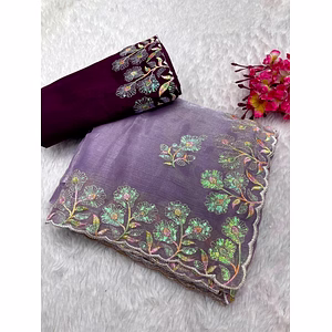 Introducing our exquisite Pure Soft Zimmy Choo Silk Saree with Aarco Cutwork. This opulent saree is a true masterpiece, meticulously crafted to enhance your elegance and style. The luxurious fabric of pure soft Zimmy Choo silk drapes gracefully, exuding an aura of sophistication.