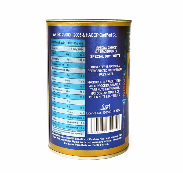 Special Choice Cashew Nuts Roasted And Salted Can Pack 100g from Special Choice is a ready-to-ship cashew nuts product, formulated to meet the nutritional needs of health-conscious consumers. Packed with essential nutrients and ideal for bulk export, this food product supports B2B distribution in retail and wellness sectors.
