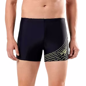 ? Speedo Medley Logo Jammer - Swim Pants ? Style and durability from the Speedo Essentials series. Feel comfortable while training with the navy blue Medley Logo Jammer with built-in support and drawstring waist. Slim and stylish with contrasting asymmetrical wave pattern in yellow on the leg, it has everything you need for a great swim workout. ? Ideal for regular swimming, EnduraFlex ECO by Speedo offers higher chlorine resistance than traditional swimwear and stays like new longer thanks to CREORA? HighClo?. It's made from 100% recycled waste, so it's better for the environment! ? Style and durability from our Essentials range. Feel comfortable and supported during training wearing the blac k Medley Logo Jammer featuring integral support and a drawstring waist. Sleek and stylish with a contrasting blue asymmetric kinetic wave design to the leg, it offers everything you need for a great swim. Ideal for regular pool sessions, our ECO EnduraFlex fabric offers higher chlorine resistance than standard swimwear fabrics and fits like new for longer with CREORA? HighClo?. It's made from 100% recycled waste fabric, so it?s better for the environment too! ? Features and Benefits ? Integral Support - for enhanced comfort ? Drawstring Waist - for enhanced fit and security ? Higher chlorine resistance than standard swimwear fabrics - fits like new for longer with CREORA? HighClo? ? Shape Retention - fabric stretches so you can enjoy your swim without feeling restricted ? Nylon yarns in the EnduraFlex fabric are made from 100% pre-consumer waste, such as waste fabric from factories.