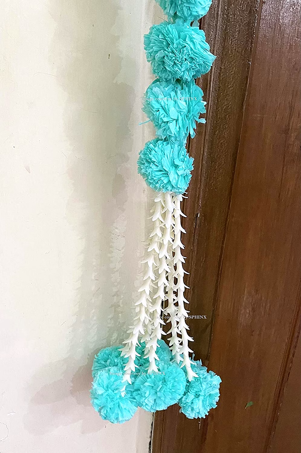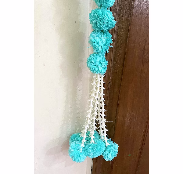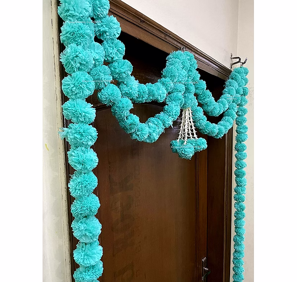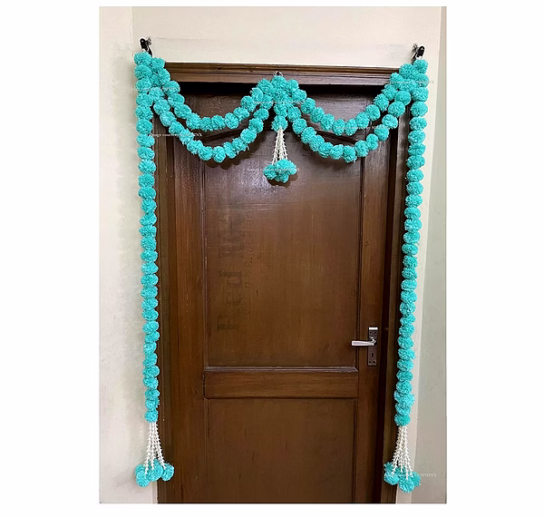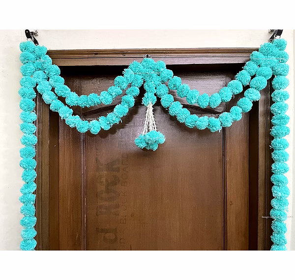 Sphinx Artificial Marigold Fluffy Flowers and Tuberose (rajnigandha) Door toran Set/Door hangings (Approx. 100 x 158 cms) - (Sky Blue)