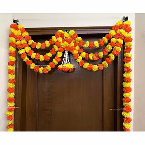 Sphinx Artificial Marigold Fluffy Flowers and Tuberose (rajnigandha) Door toran Set/Door hangings (Approx. 100 x 158 cms) - (Yellow and Light Orange)