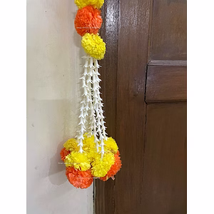 Sphinx Artificial Marigold Fluffy Flowers and Tuberose (rajnigandha) Door toran Set/Door hangings (Approx. 100 x 158 cms) - (Yellow and RED)
