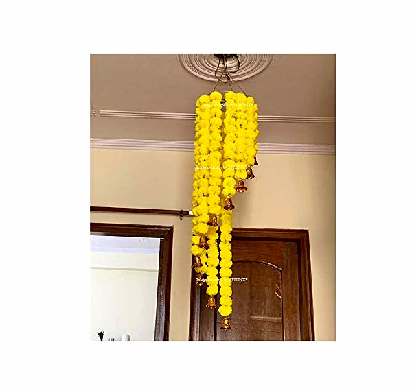 Package contains- 1 unit of SPHINX Artificial Marigold Fluffy Flowers (Genda phool) Chandelier/Jhoomar - Yellow (Approx 4 ft. height)