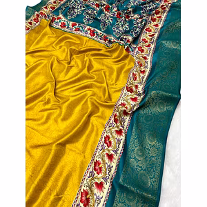 Introducing our exquisite *🌹Lehenga(Stitched)*, a stunning ensemble that combines elegance and craftsmanship. Crafted from luxurious Dola Silk fabric, this lehenga showcases the beauty of traditional Indian attire. Featuring intricate Kalamkari Print with a weaving border, the lehenga exudes timeless charm. The waist is supported up to 42, ensuring a comfortable fit for a wide range of body sizes. The lehenga is stitched with canvas, providing structure and durability. The drawstring with a zip closure adds convenience to the ensemble. With a length of 41 and a flair of 3.40 meters, the lehenga drapes gracefully, enhancing your feminine allure. The inner lining made of micro cotton ensures utmost comfort throughout the day. The accompanying blouse, made from the same Dola Silk fabric, is unstitched and adorned with printed motifs and a weaving border. With a length of 0.90 meters, it allows for personalized tailoring to create the perfect fit for you. To complete the ensemble, the *🌹Lehenga(Stitched)* comes with a beautiful dupatta made of Dola Silk fabric. The dupatta features Kalamkari Print with a weaving border and is finished with both side tassels. With a length of 2.4 meters, it offers versatility in styling. This package contains the lehenga, blouse, dupatta, and drawstring, offering a complete and convenient ensemble for any occasion. Despite its stunning design, the *🌹Lehenga(Stitched)* is lightweight, weighing only 0.900 kg. Elevate your style and make a statement with our *🌹Lehenga(Stitched)*, a perfect blend of tradition and contemporary fashion. Embrace the allure of Indian craftsmanship and exude confidence wherever you go.