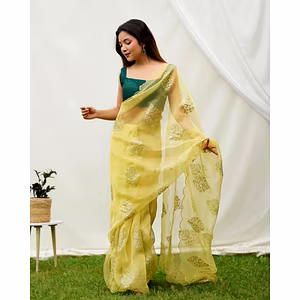 This Stunning Embroidered Taby Silk Organza Saree with Matching Blouse is the perfect addition to any wardrobe. Made from high-quality silk organza, this saree showcases intricate embroidery and is sure to turn heads. The saree comes with a matching blouse that is equally as stunning. The blouse features intricate embroidery that complements the saree perfectly. The combination of the two creates a look that is elegant and sophisticated. The saree is lightweight and easy to wear, making it an ideal choice for any occasion. Whether you're attending a wedding or a dinner party, this saree is sure to impress. One of the unique selling points of this saree is its versatility. It can be dressed up or down depending on the occasion. Wear it with heels and statement jewelry for a formal event, or pair it with sandals and minimal accessories for a more casual look. In addition to its versatility, this saree is also incredibly comfortable. The silk organza material is soft to the touch and drapes beautifully on the body. You can wear it for hours without feeling uncomfortable. Overall, the Stunning Embroidered Taby Silk Organza Saree with Matching Blouse is a must-have for anyone who wants to look and feel their best. Its high-quality materials, intricate embroidery, and versatility make it a standout piece that you'll cherish for years to come.
