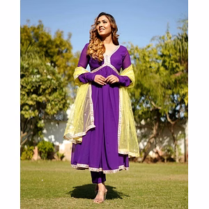 Introducing the Stunning Fox Georgette Gown, a true masterclass in elegance and sophistication. Crafted with meticulous attention to detail, this gown is designed to make a lasting impression at any special occasion. Featuring a full flair silhouette, the gown gracefully accentuates your figure and flows beautifully with every step you take. The luxurious fox georgette fabric adds a touch of opulence, draping effortlessly to create a stunning silhouette. But it's not just the impeccable design that sets this gown apart. The intricate fancy details elevate it to a whole new level of glamour. Delicate embroidery and beadwork adorn the bodice, creating a mesmerizing pattern that catches the light and dazzles with every movement. Comfort is not compromised for style, as the gown is crafted with the utmost care to ensure a perfect fit. The soft lining and carefully placed seams provide maximum comfort, so you can feel confident and at ease throughout the event. With its timeless appeal and attention-grabbing design, the Stunning Fox Georgette Gown is truly a showstopper. Whether you're attending a black-tie gala, a wedding, or any other formal event, this gown is guaranteed to turn heads and make you feel like royalty. Indulge in the beauty and allure of the Stunning Fox Georgette Gown and make a statement that will leave a lasting impression. With its full flair silhouette, fancy details, and impeccable craftsmanship, this gown is the epitome of elegance and sophistication. Don't miss the opportunity to own a piece of pure luxury.