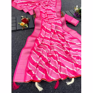 Introducing the Stunning Gulabi Leheriya Sarees - perfect for the modern woman who wants to make a statement while embracing her traditional roots. Our sarees feature a beautiful digital print with a fancy jari border that adds a touch of elegance to any look. Crafted from high-quality materials, our sarees are soft to the touch and comfortable to wear for any occasion. The stunning pink and white leheriya pattern is timeless yet bold, making it a standout piece in your wardrobe. Our sarees are versatile and can be worn in a variety of styles to suit your personal taste and occasion. Whether you're going to a wedding, a party, or just a casual day out, our sarees are the perfect choice. What's more, our sarees are easy to care for and maintain, ensuring that they remain in pristine condition for years to come. Plus, they make the perfect gift for your loved ones who appreciate exquisite fashion. In conclusion, the Stunning Gulabi Leheriya Sarees are a must-have for any fashion-forward woman who wants to showcase her style and culture. With their unique blend of tradition and modernity, our sarees are sure to turn heads and make a lasting impression. Order yours today and experience the beauty and elegance of the Stunning Gulabi Leheriya Sarees for yourself!