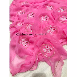 Introducing the stunning Najbin chiffon Saree, a must-have addition to every fashion-forward woman's wardrobe! This saree boasts a beautiful color combination that is sure to turn heads, with a cantrast bp suppr that adds a touch of sophistication and elegance. Crafted with the finest Najbin chiffon fabric, this saree is lightweight and comfortable to wear all day long. The Pure hand rajputi ksb work with all over 13 buttis boder work adds a touch of traditional charm and grace, making it perfect for any occasion, from weddings to formal events or even casual outings. But what truly sets this saree apart is the attention to detail and exquisite craftsmanship. The intricate handwork is a testament to the skill and expertise of our artisans, ensuring that every piece is unique and of the highest quality. With its versatile design, this saree can be styled in countless ways to suit your individual taste and preference. Dress it up with statement jewelry and heels for a glamorous look, or keep it simple and understated for a more casual vibe. So why wait? Keep shopping with us and add the Najbin chiffon Saree to your collection today!