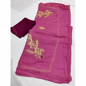 Introducing the stunning Najbin chiffon Saree, a must-have addition to every fashion-forward woman's wardrobe! This saree boasts a beautiful color combination that is sure to turn heads, with a cantrast bp suppr that adds a touch of sophistication and elegance. Crafted with the finest Najbin chiffon fabric, this saree is lightweight and comfortable to wear all day long. The Pure hand rajputi ksb work with all over 13 buttis boder work adds a touch of traditional charm and grace, making it perfect for any occasion, from weddings to formal events or even casual outings. But what truly sets this saree apart is the attention to detail and exquisite craftsmanship. The intricate handwork is a testament to the skill and expertise of our artisans, ensuring that every piece is unique and of the highest quality. With its versatile design, this saree can be styled in countless ways to suit your individual taste and preference. Dress it up with statement jewelry and heels for a glamorous look, or keep it simple and understated for a more casual vibe. So why wait? Keep shopping with us and add the Najbin chiffon Saree to your collection today!