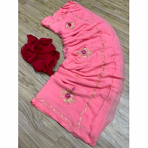 Introducing our beautiful color combination Saree, the ultimate choice for all ladies who desire elegance and style. Crafted with utmost care and precision, this Saree is guaranteed to make you stand out in any gathering or occasion. Made from high-quality Najbin chiffon, this Saree offers a luxurious and comfortable wearing experience. The soft and lightweight fabric drapes gracefully, accentuating your feminine curves and making you feel confident and beautiful. One of the key features of this Saree is the stunning contrast border and blouse piece, which adds a touch of sophistication and uniqueness to your ensemble. The intricate hand rajputi ksb work on the Saree further enhances its charm and allure, making it a true masterpiece. Not only does this Saree offer exquisite craftsmanship, but it also ensures versatility. Whether you're attending a wedding, festival, or any special occasion, this Saree is perfect for all. It complements a wide range of body types and can be styled in various ways, allowing you to create different looks effortlessly. By choosing our beautiful color combination Saree, you are investing in a timeless piece that will never go out of style. It is a true reflection of your impeccable taste and discerning fashion sense. With this Saree, you will be the center of attention and receive compliments from all. So, why wait? Discover the beauty and elegance of our beautiful color combination Saree and make a statement wherever you go. Shop with us now and experience the joy of wearing a truly remarkable piece of art.