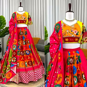 Introducing our exquisite Pure Reyon Lehenga Set, a true masterpiece that is sure to captivate your heart. Crafted with utmost precision and attention to detail, this stunning ensemble is designed to make you feel like a radiant princess. The fabric details of the lehenga are what truly set it apart. Made with pure Reyon and adorned with a striking digital print work, it exudes elegance and sophistication. With a generous 4-meter flair, it gracefully flows with every step, creating a mesmerizing effect that is sure to turn heads. To ensure maximum comfort, the lehenga comes with a micro inner that fits up to 44 inches, allowing you to move with ease and grace. The choli, made with pure Reyon and featuring exquisite digital print work, adds a touch of glamour and style to the ensemble. It comes unstitched, giving you the freedom to customize it to your desired fit. Completing the ensemble is the pure Reyon dupatta, embellished with handwork mirror and border lace work. This delicate detailing adds a touch of finesse and elevates the overall look of the outfit. The dupatta measures 2.2 meters, allowing you to drape it in various styles, adding versatility to your ensemble. Despite its luxurious appearance, this lehenga set is surprisingly lightweight, weighing only 1200 grams. This ensures that you can effortlessly flaunt your style and grace without feeling weighed down. Elevate your ethnic wardrobe with our Pure Reyon Lehenga Set. With its exquisite fabric, impeccable craftsmanship, and attention to detail, it is the perfect choice for weddings, festive occasions, and special events. Be prepared to make a lasting impression and steal the spotlight with this truly unique ensemble.