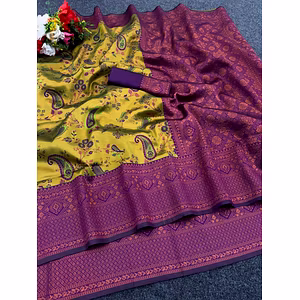 Step into the spotlight with our stunning Triple Weaving Zari Tissue Sarees, designed to make you shine at every party and wedding you attend. Crafted with meticulous attention to detail, these sarees are a perfect blend of elegance and glamour. Featuring a triple weaving technique, these sarees exude a luxurious feel and showcase intricate zari work that adds a touch of opulence to your ensemble. The rich and lustrous fabric drapes gracefully, making you the center of attention wherever you go. Our Triple Weaving Zari Tissue Sarees are not only aesthetically pleasing but also incredibly comfortable to wear. The lightweight and breathable fabric allow you to move with ease and enjoy the festivities without any discomfort. These sarees are available in a wide range of vibrant colors and exquisite designs, allowing you to choose the perfect one that complements your style and personality. Whether you prefer traditional motifs or contemporary patterns, our collection has something to suit every taste. In addition to their stunning appearance, our sarees offer practical benefits as well. The high-quality fabric ensures durability, so you can cherish these sarees for years to come. They are also easy to maintain, making them a convenient choice for busy individuals. With our Triple Weaving Zari Tissue Sarees, you can effortlessly make a lasting impression at any occasion. Whether you want to dazzle at a wedding or make a statement at a party, these sarees are sure to turn heads and make you feel like a true diva. Elevate your style and embrace the elegance of our Triple Weaving Zari Tissue Sarees. Order yours today and experience the perfect blend of tradition and contemporary fashion.