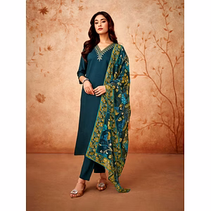 Introducing our latest set featuring PV CHANDERI fabric with stunning embroidery and a beautiful muslin print dupatta, available in sizes S to XXL. This set is the perfect addition to your wardrobe, offering both comfort and style. Our PV CHANDERI fabric is of the highest quality, ensuring durability and longevity. The attractive embroidery on the top adds a touch of elegance and sophistication, making it suitable for both formal and informal occasions. The muslin print dupatta is a unique and eye-catching addition to the set, enhancing its overall appeal. This set comes in a stylish single color, making it easy to accessorize and pair with a variety of shoes and jewelry. Additionally, at only 450 grams, it is lightweight and comfortable to wear for extended periods, making it perfect for weddings, parties, and other events. Whether you're looking to update your wardrobe or searching for the perfect gift, this set is sure to impress. So why wait? Add our PV CHANDERI set to your cart today and experience the perfect combination of comfort, style, and quality.