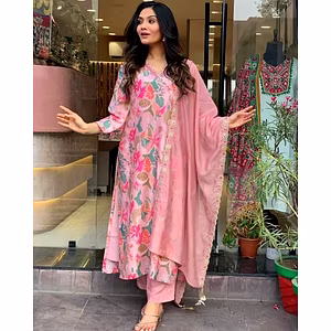 Introducing our latest set featuring PV CHANDERI fabric with stunning embroidery and a beautiful muslin print dupatta, available in sizes S to XXL. This set is the perfect addition to your wardrobe, offering both comfort and style. Our PV CHANDERI fabric is of the highest quality, ensuring durability and longevity. The attractive embroidery on the top adds a touch of elegance and sophistication, making it suitable for both formal and informal occasions. The muslin print dupatta is a unique and eye-catching addition to the set, enhancing its overall appeal. This set comes in a stylish single color, making it easy to accessorize and pair with a variety of shoes and jewelry. Additionally, at only 450 grams, it is lightweight and comfortable to wear for extended periods, making it perfect for weddings, parties, and other events. Whether you're looking to update your wardrobe or searching for the perfect gift, this set is sure to impress. So why wait? Add our PV CHANDERI set to your cart today and experience the perfect combination of comfort, style, and quality.