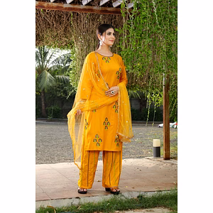 Introducing a stunning and comfortable outfit that is perfect for any occasion. Our Kurti set is made from high-quality 14kg Rayon fabric that feels soft and lightweight on the skin. The Kurti length is 45+ and is paired with a stylish Pent that features intricate embroidery. The Pent length is 38+ and is made from durable Rayon fabric. To complete the look, we have included a beautiful Duptta made from American Crepe with Digital print. Our Kurti set comes in four different sizes, M(38), L(40), XL(42), and XXL(44), ensuring a perfect fit for all body types. Stand out from the crowd and make a fashion statement with our Kurti set that effortlessly combines style, comfort, and quality.
