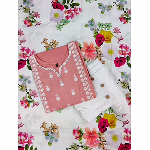 Introducing our latest fashion ensemble, a beautifully crafted outfit designed to make you look effortlessly stylish and feel incredibly comfortable. Made with the finest fabrics, this set features a top and pant made from luxurious RAYON material, ensuring a soft and smooth texture against your skin. The accompanying DUPATTA, also made from RAYON, adds an elegant touch to complete the look. Our designers have meticulously created this outfit to cater to various body types, offering sizes ranging from M(38), L(40), XL(42), to XXL(44). The elastic waist on the pant provides a comfortable and flexible fit, making it suitable for any body shape. The length of the top reaches a maximum of 45 inches, while the pant extends up to 38 inches, ensuring a flattering and modest appearance. With its fully stitched and ready-to-wear design, this outfit saves you time and effort, allowing you to effortlessly dress up for any occasion. The lightweight construction, weighing just 0.850 kg, ensures ease of movement and all-day comfort. Our product stands out from the crowd, not only due to its impeccable craftsmanship and high-quality materials but also because it embodies the perfect fusion of style and comfort. Whether you're attending a festive celebration, a casual gathering, or a formal event, this outfit will undoubtedly make a statement. Don't miss out on this exclusive opportunity to own a wardrobe staple that exudes elegance and sophistication. Embrace the beauty of our RAYON outfit and experience the pleasure of wearing something truly special. Order now and elevate your style to new heights!