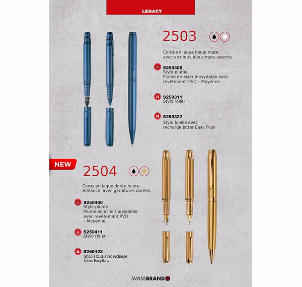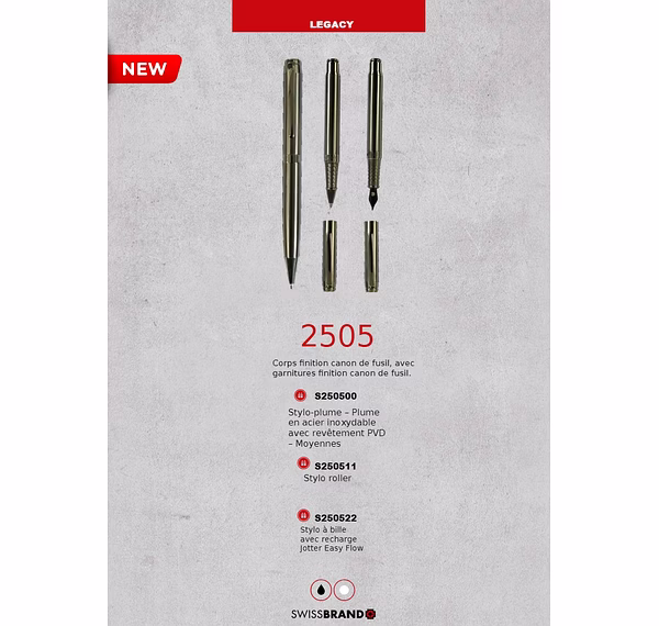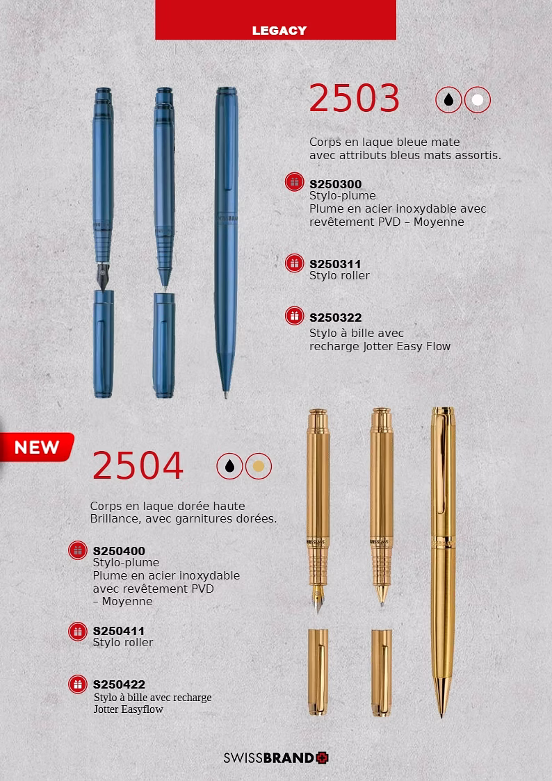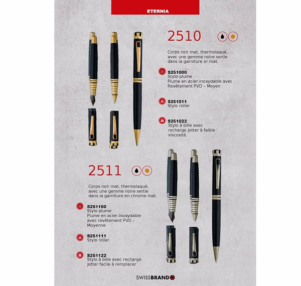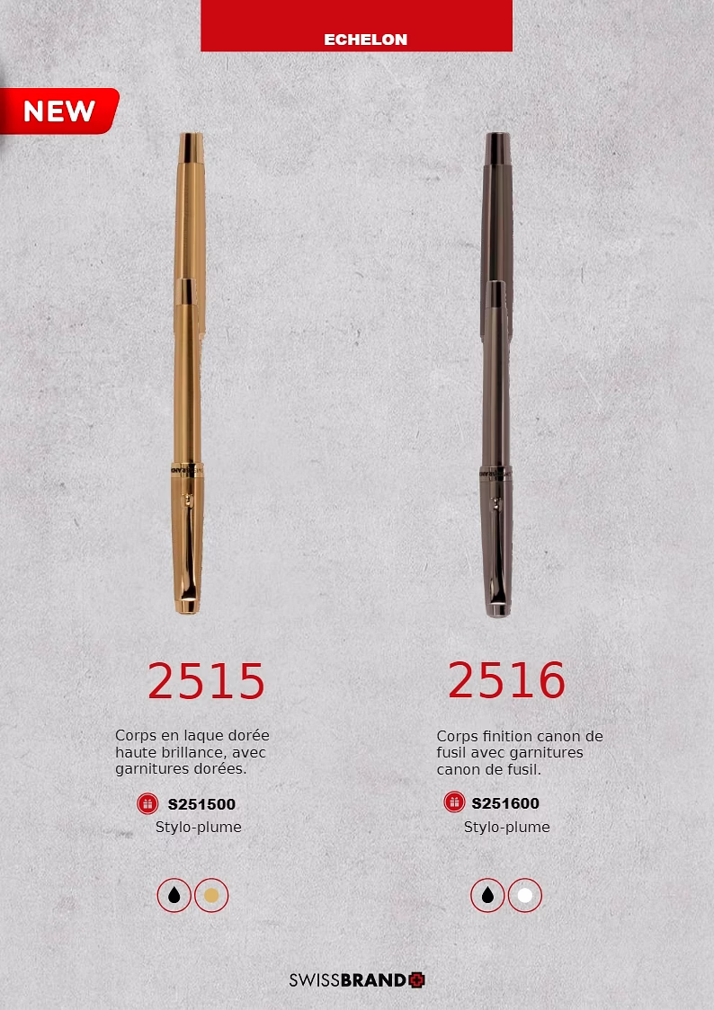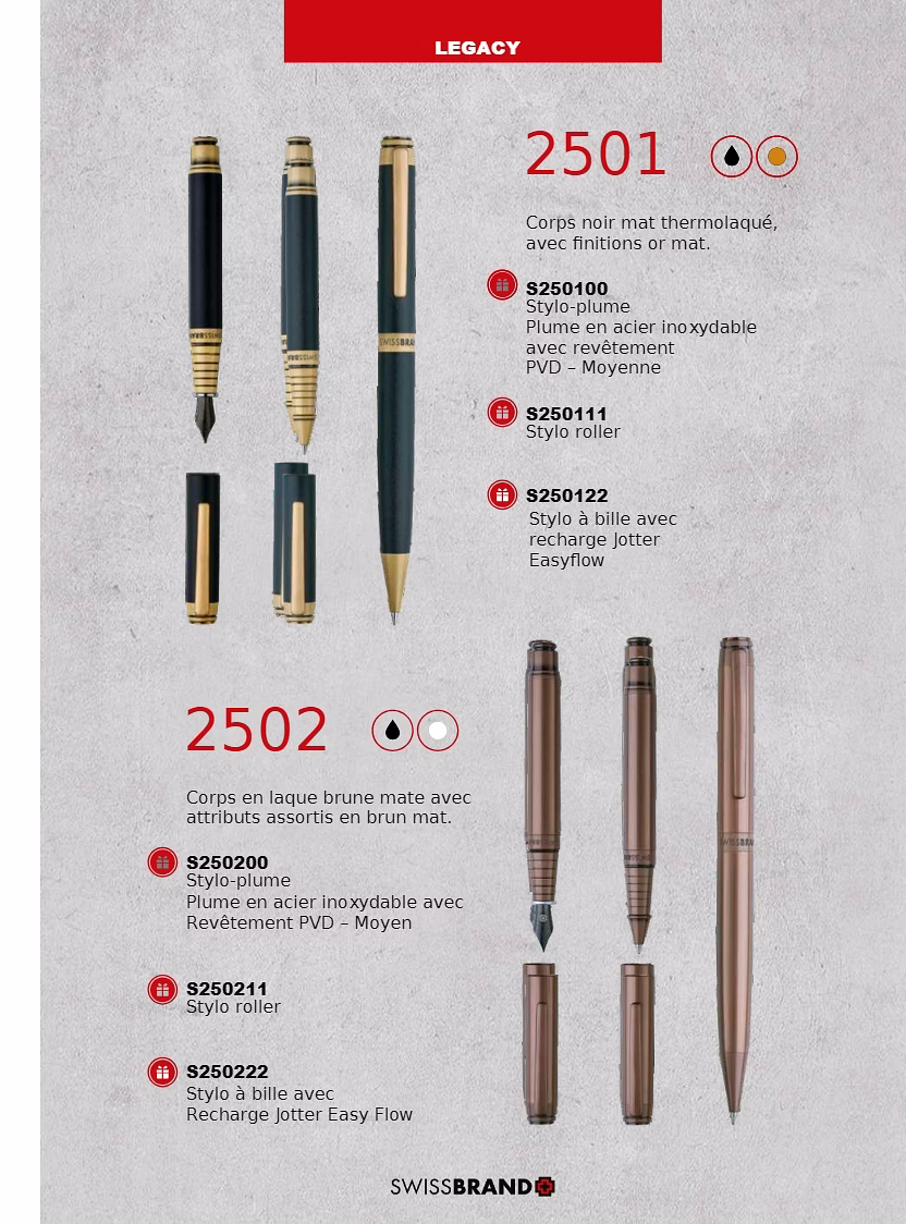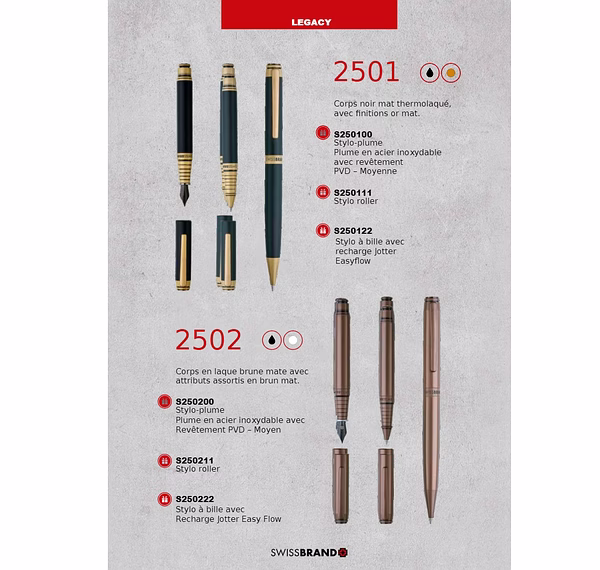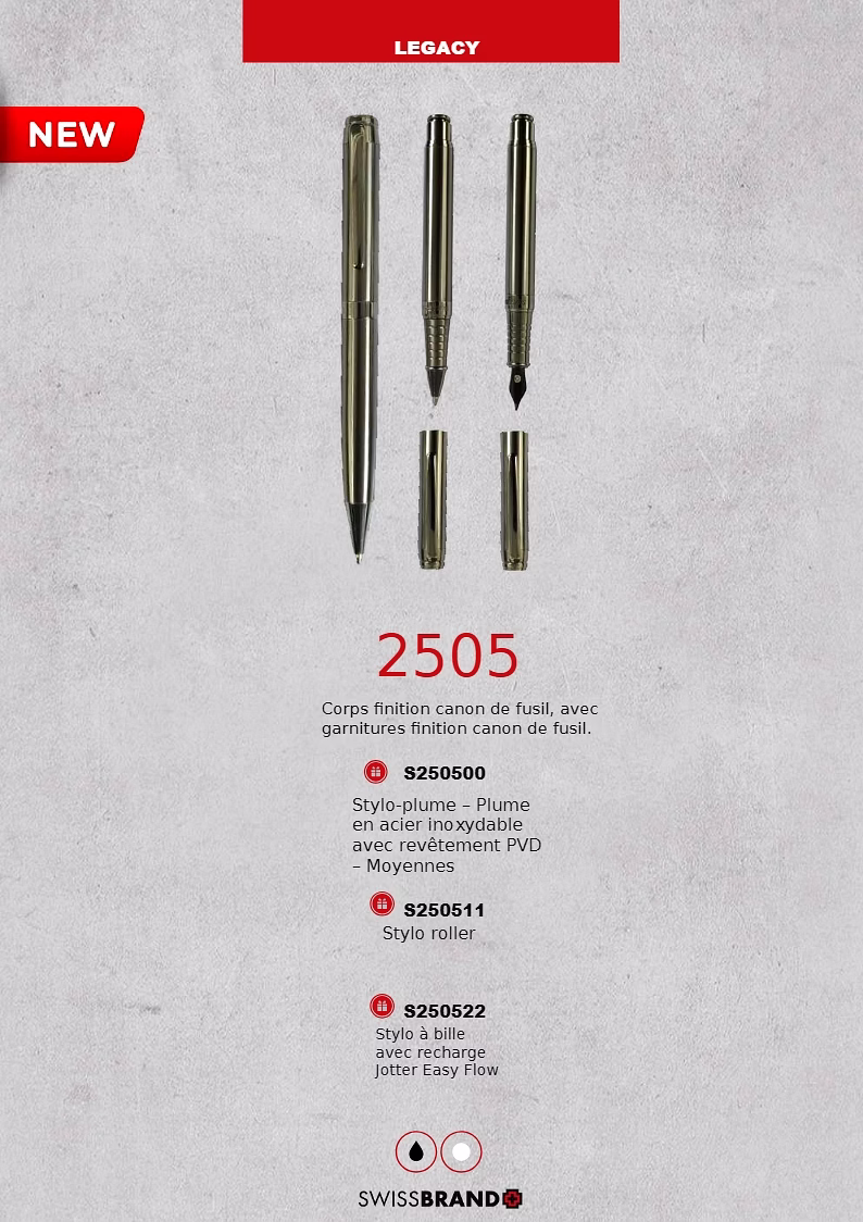 Une gamme de stylos haut de gamme de conception suisse et de coffrets cadeaux..
