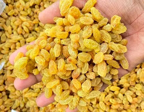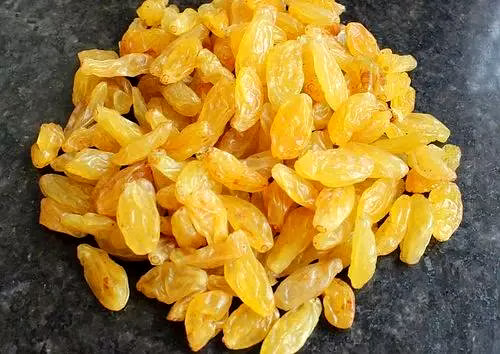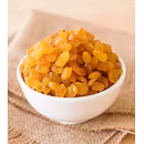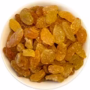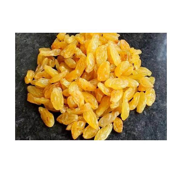 Golden raisins are dehydrated grape products, typically derived from Vitis vinifera cultivars such as Sultana or Thompson Seedless, that undergo pre-drying treatment with sulfur dioxide (SO₂) to inhibit enzymatic browning and preserve their characteristic golden-yellow pigmentation. Compared to other raisin types, they are generally smaller in size, possess higher soluble sugar content, and retain greater moisture, resulting in a sweeter flavor profile and softer texture.