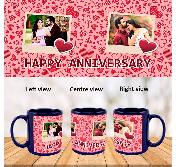 Super Love Designer Happy Anniversary Blue Patch Mug