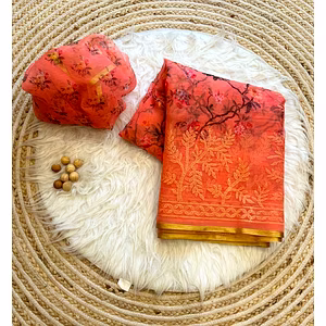 Experience the luxurious feel of our Superb Hand-Dyed Organza Silk Saree with Stunning Shibori Print. Our saree is hand-dyed using only the finest quality of organza silk material, ensuring that it feels soft and lightweight against your skin while providing you with maximum comfort and ease of movement. The saree's stunning shibori print design is a testament to the skillful craftsmanship of our artisans, who take great pride in creating beautiful and unique pieces. The intricate patterns are carefully arranged to create a visually stunning and eye-catching design that is sure to turn heads. Our saree is perfect for any occasion, be it a formal event or a casual gathering. The lightweight and breathable fabric make it ideal for hot and humid weather, while the stunning print design adds a touch of elegance and sophistication to any outfit. With our Superb Hand-Dyed Organza Silk Saree with Stunning Shibori Print, you can be sure that you are not only getting a high-quality product but also one that is ethically made. We are committed to supporting local artisans and ensuring fair wages and working conditions. Invest in our Superb Hand-Dyed Organza Silk Saree with Stunning Shibori Print today and experience the perfect combination of style, comfort, and sustainability.