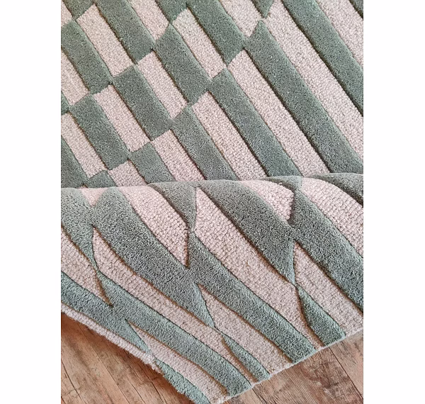 Elevate your living space with our Swirl Wool Area Rug in Beige & Green. This exquisite rug combines style and quality to enhance any room decor.
