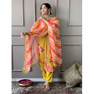 Elevate your ethnic wardrobe with our Tabby Organza Kurta Set, a perfect blend of traditional charm and contemporary elegance. Crafted with exquisite organza fabric, this set exudes sophistication and grace.
