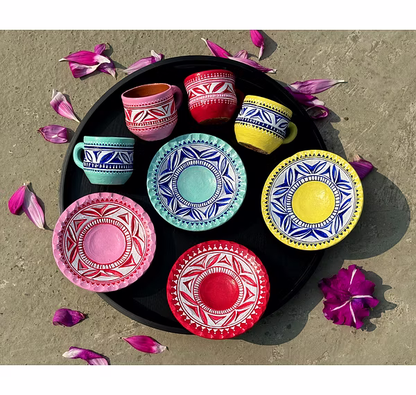 Tea Cup Set Under 4 Cups and 4 Plates by RAW CRAFT embodies the perfect blend of tradition and modernity. Handcrafted with precision, this elegant attire is ideal for any festive or casual occasion.