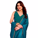 Elevate your party look with our Teal Party Wear Saree featuring exquisite embellishments. This luxurious saree is perfect for special occasions.