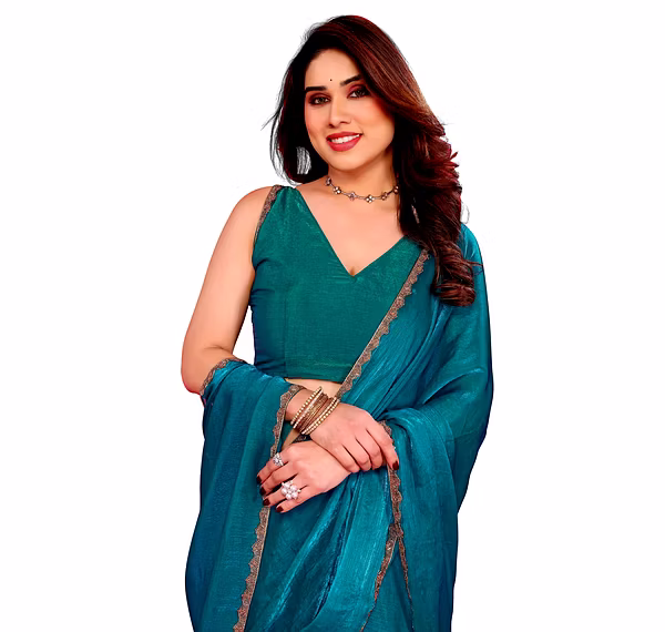 Transform your wardrobe with our teal saree, a versatile piece suitable for weddings, parties, or festive occasions. Its border chiffon design exudes timeless beauty and grace.