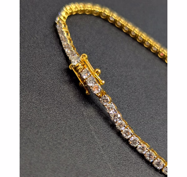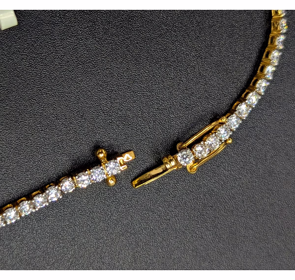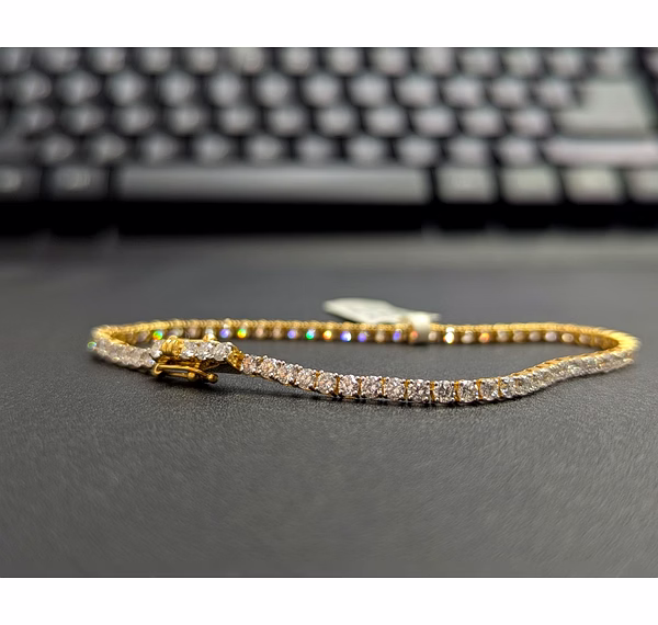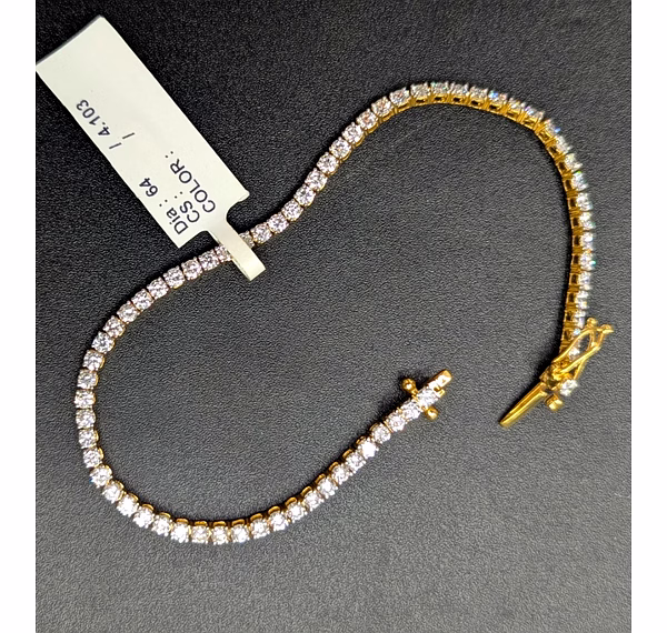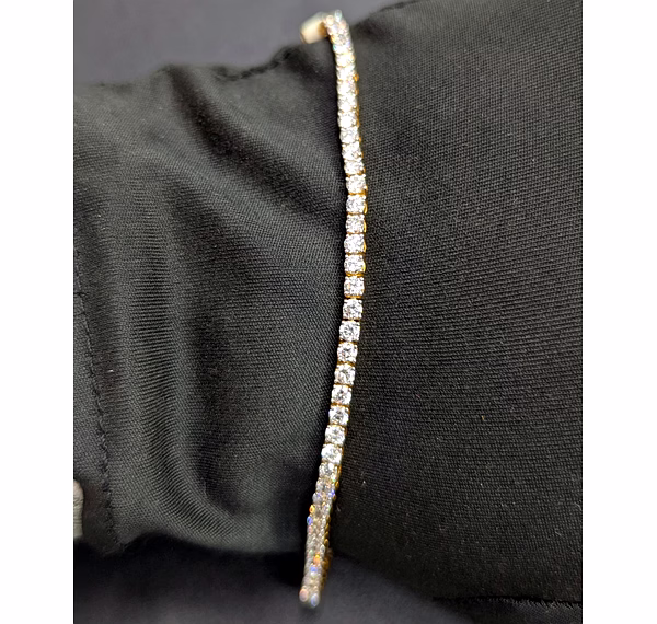 Command attention with our 4.10 total carat weight tennis bracelet. This piece is designed for those who want a visible, high-impact sparkle on their wrist. Set in a sturdy 5.41g (gross weight) 14kt yellow gold frame, the diamonds are showcased in a classic setting that maximizes light entry for incredible fire.