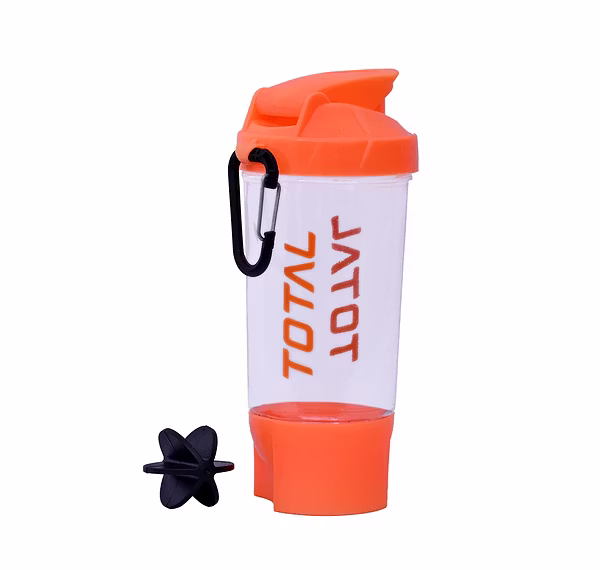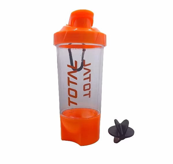 Enjoy your protein shakes and smoothies on-the-go with the Total Euro Orange 575 ML Shaker Bottle with Mixer Ball. With its convenient and easy-to-carry design, this shaker bottle is perfect for use at the gym, at home, or on-the-go. The mixer ball helps to evenly blend and distribute ingredients, ensuring a smooth and consistent texture for your drinks. With a large 575 ML capacity, you'll spend less time refilling and more time enjoying your drink. Plus, the BPA-free construction ensures that your drinks are safe and free from harmful chemicals. The durable and shatterproof construction makes it perfect for everyday use and adds an extra layer of safety. This shaker bottle is suitable for use with a wide range of supplements and powders, and the wide mouth opening makes it easy to add ingredients and clean your shaker bottle. With its vibrant orange color, this shaker bottle adds a pop of style to your gym gear or kitchen. And when it's time to clean up, the shaker bottle is dishwasher safe for easy and convenient cleaning.